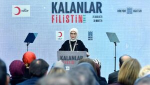 Açılışta konuşan Emine Erdoğan, Gazze’nin harita üzerinde küçücük bir nokta olmasına karşın insanlık tarihinin en ağır trajedilerinden birine sahne olduğunu vurguladı. Erdoğan, İsrail’in son iki yılda Gazze’ye 200 bin tonu aşkın bomba yağdırdığını, bunun Hiroşima’ya atılan bombanın 14 katına denk geldiğini hatırlattı.